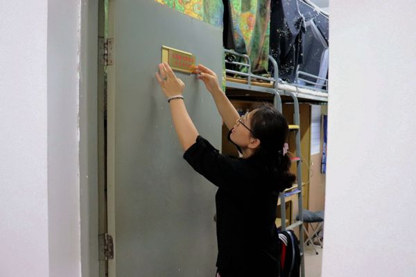 在挂牌之前,老师和同学们走访了各个星级宿舍,陈书记对星级宿舍的优异表现给予了充分的肯定,同时强调星级宿舍应该承担起榜样示范作用希望在检查中脏、乱、差及不文明现象的宿舍能以文明宿舍为榜样,尽快整改到位;也希望星级宿舍的同学们继续保持,再接再厉。最后陈书记亲自为获得星级宿舍的宿舍挂牌,并合影留念。