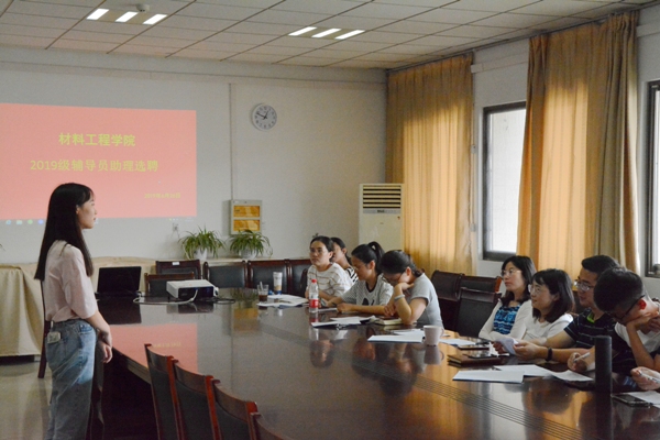 为选拔一批政治素质高、综合能力强的新生辅导员助理,2019年6月26日中午12 : 30,材料工程学院在工科楼会议室举行19级辅导员助理选聘大会。材料工程学院党委副书记陈智慧携全体辅导员和2018级辅导员助理出席了本次选聘大会。