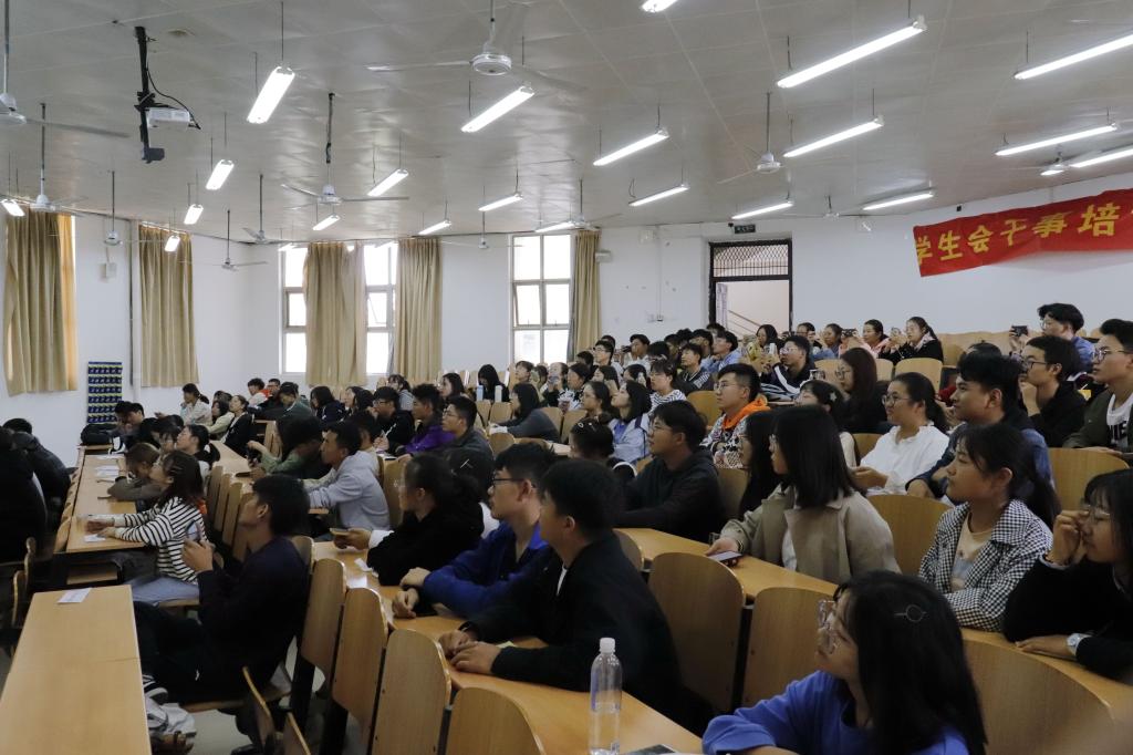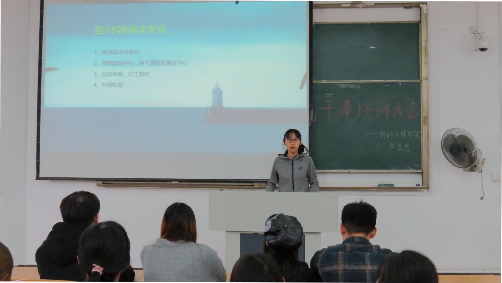 2019年10月16日12:30,材料工程学院学生会干事培训大会在6300召开。本次活动由组织部干事郭洪江主持,学生会副主席赵明珠(主持工作),学生会副主席金荣泰、施玲艳、王览月,各部部长和副部长,各部门新进干事参加本次活动。