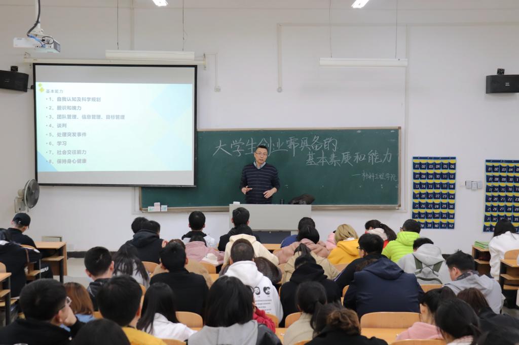 讲座伊始,陈频副教授邀请一位同学以己为例,谈谈如何理解创业。随后,陈频副教授对其发言进行点评,强调创业要与创新相结合的理念。接着,陈频副教授通过讲述自己在国际大会上获奖等亲身经历,进一步阐明创业的内涵,并从科学规划、团队管理、信息管理、处理事件、社会交往和身心健康等六个方面阐述了创业所需要具备的基本能力。最后,陈频副教授总结了创业的基本要求,希望同学们能对市场进行认真分析,并祝福同学们在创业之路上一帆风顺。