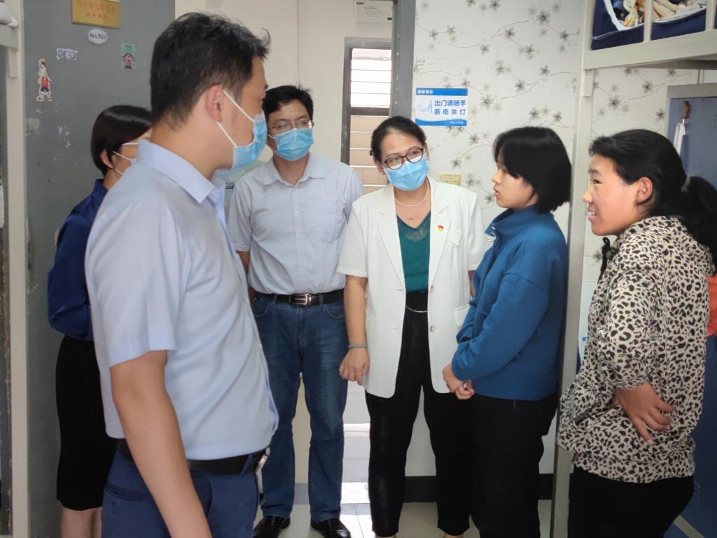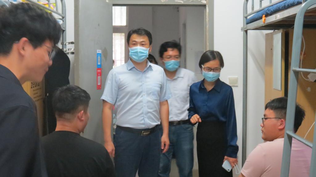 院领导轻轻敲开一扇扇宿舍门,与同学亲切交谈,同学们也热情回应,欢迎老师们的到来。“同学,你老家是哪里的”、“你学的是什么专业”、“南京的饭菜合胃口吗”、“这个宿舍的空调我感觉不是很制冷,同学们要不要报修一下”......这一系列暖心又“接地气”的话题迅速拉近了老师和新生的距离,让同学们倍感温暖。学院领导也希望新生强化安全意识,遵守学校关于疫情防控的要求规定;鼓励同学们相互理解,互相包容,共同营造良好温馨的宿舍环境。在整个宿舍走访过程中,学院老师对大一新生的各种疑惑和问题进行了详细耐心的解答,亲和的态度和良好的氛围感染着在场的每一个人。