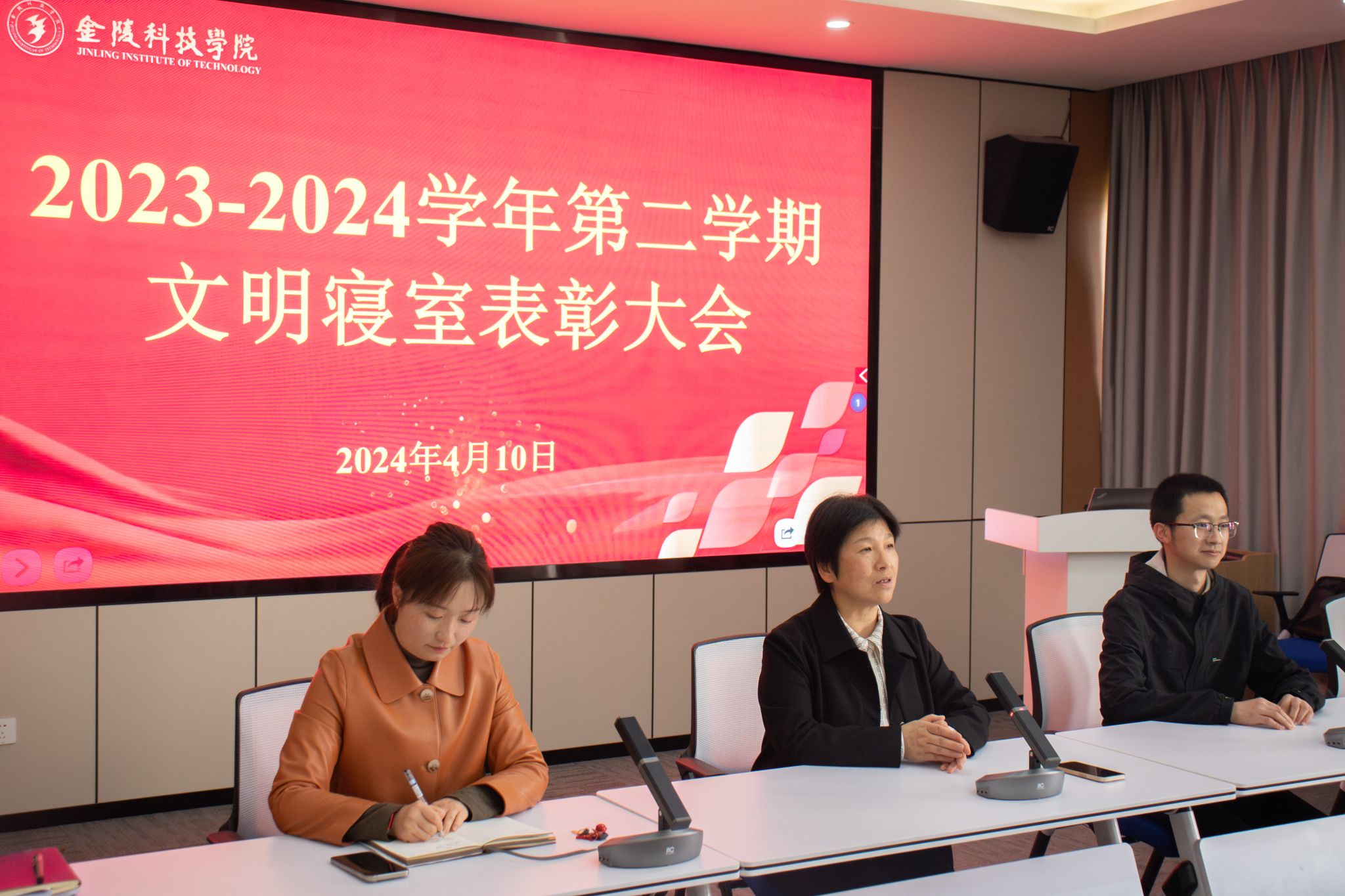表彰会上,赵志伟老师宣读了获奖宿舍名单,陈健书记、韩铖副书记和全体辅导员为文明寝室代表颁奖,并向他们表示祝贺。随后陈健书记作总结发言,她指出,文明寝室评选活动有利于推进学生宿舍文明的建设,营造温馨舒适的宿舍环境,更好地展现材料学子积极向上的精神风貌,提高综合素质,“文明寝室”荣誉称号既是对同学们的认可和肯定,也是崇尚文明、培养团队精神的具体表现。同时,陈健书记还勉励同学们以本次文明寝室评选为契机,进一步加强宿舍文化建设,发挥示范引领作用,带动形成优良舍风班风。