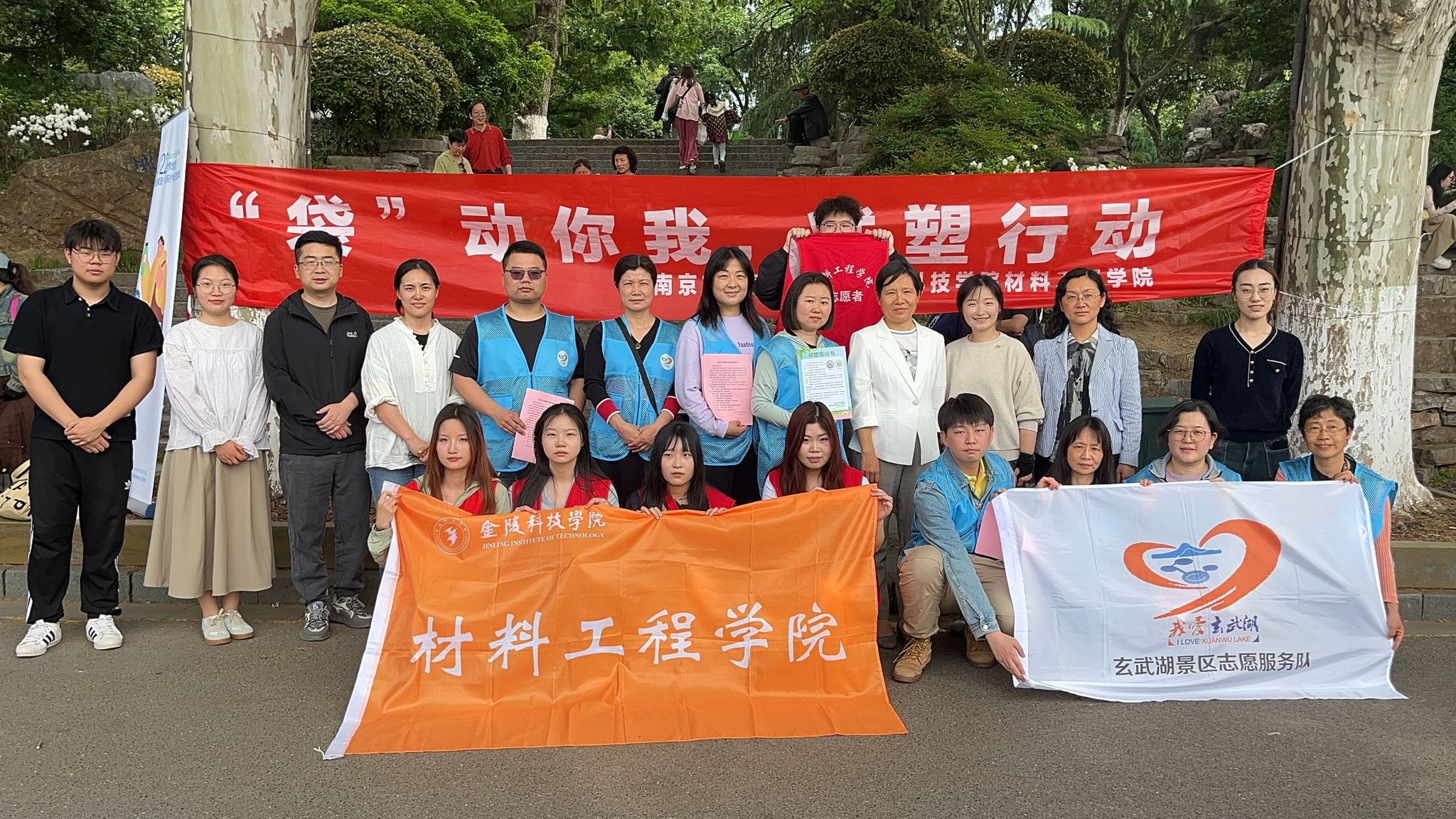 在2024年第55个“世界地球日”来临之际,为进一步引导社会公众尤其是青少年积极践行绿色生活理念,让绿色、低碳、环保成为更多社会公众的时尚追求,金陵科技学院材料工程学院联合南京市玄武湖景区4月21日下午在玄武湖畔开展以“‘袋’动你我,减塑行动”为主题的环境保护宣传活动。玄武湖公园管理处党委副书记王鹤、组织人事部部长张唯,副部长程程,材料工程学院党委副书记韩铖、学工办主任许倩颖、团总支书记邵云龙、辅导员王敏,以及两家单位的部分工作人员参加活动。