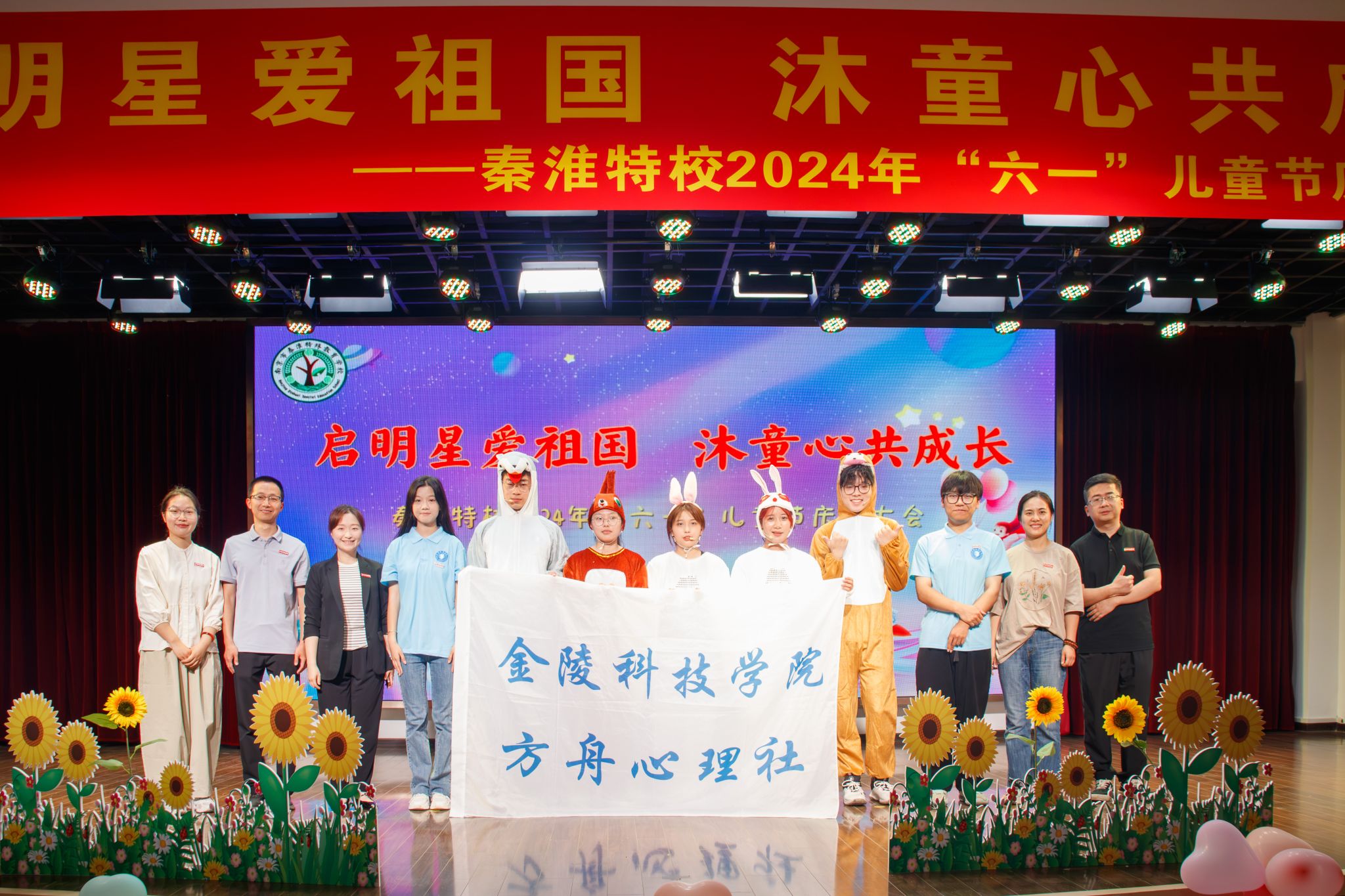 在“六一”儿童节来临之际,5月31日上午,金陵科技学院材料工程学院赴南京市秦淮特殊教育学校参加“六一”文艺汇演并进行“方舟”心育实践基地的揭牌仪式。材料工程学院党委副书记韩铖,学工办主任许倩颖,团总支书记邵云龙,辅导员赵志伟、王敏及“方舟”心理社的志愿者们参加活动。