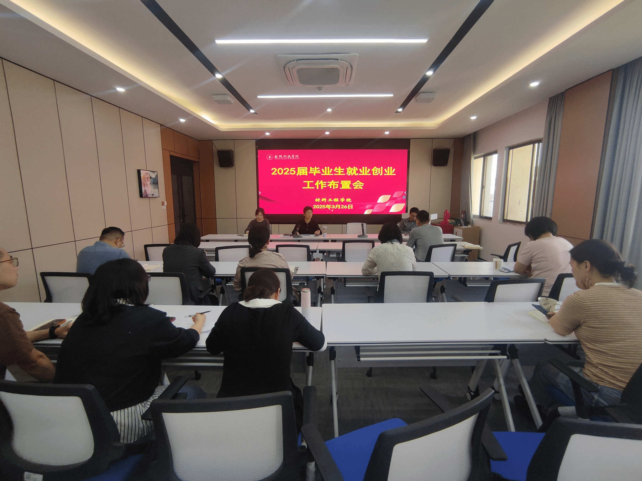 3 月 26 日,材料工程学院在知行楼 A506 会议室召开 2025 届毕业生就业创业工作布置会。学院党委书记陈健、副书记韩铖及副院长管航敏,各系支部书记、系主任,院就业干事及全体毕业班辅导员、班主任参加,共同为毕业生就业工作献计献策。会议由陈健书记主持。